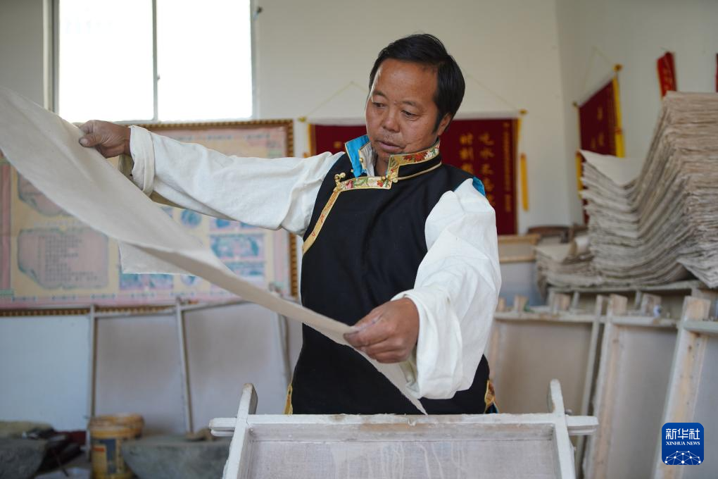 48歲的格桑旦增是“雪拉藏紙制作技藝”傳承人,也是西藏自治區(qū)拉薩市尼木縣雪拉藏紙農(nóng)牧民專業(yè)合作社負(fù)責(zé)人。他世代居住的尼木縣地處高原溫帶半干旱季風(fēng)氣候區(qū),平均每天日照8.3小時(shí)。得天獨(dú)厚的自然條件使其自古以來(lái)便是影響較大的藏紙產(chǎn)區(qū)之一。