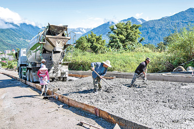 10月13日,工人們在墨脫縣修筑鄉(xiāng)村公路。新華社記者 孫 非攝