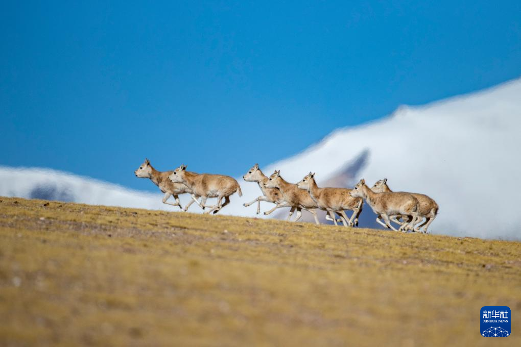 在羌塘國家級自然保護區(qū),一群雌性藏羚羊在奔跑(12月16日攝)。新華社記者 姜帆 攝