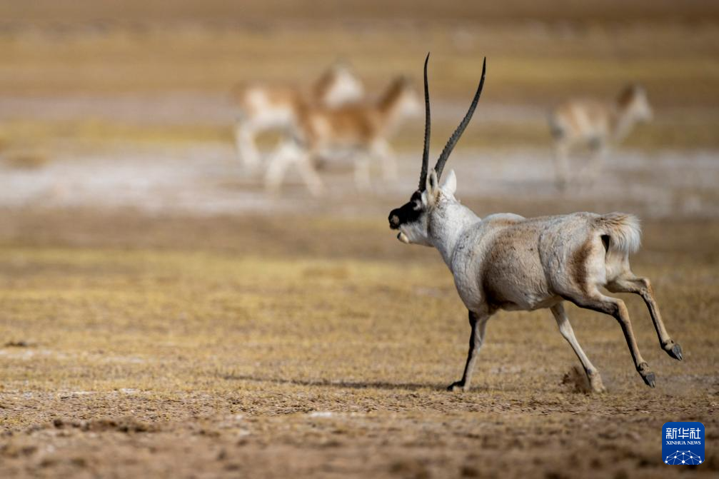 在羌塘國家級自然保護區(qū),一只雄性藏羚羊在奔跑(12月16日攝)。新華社發(fā)(旦增努布 攝)