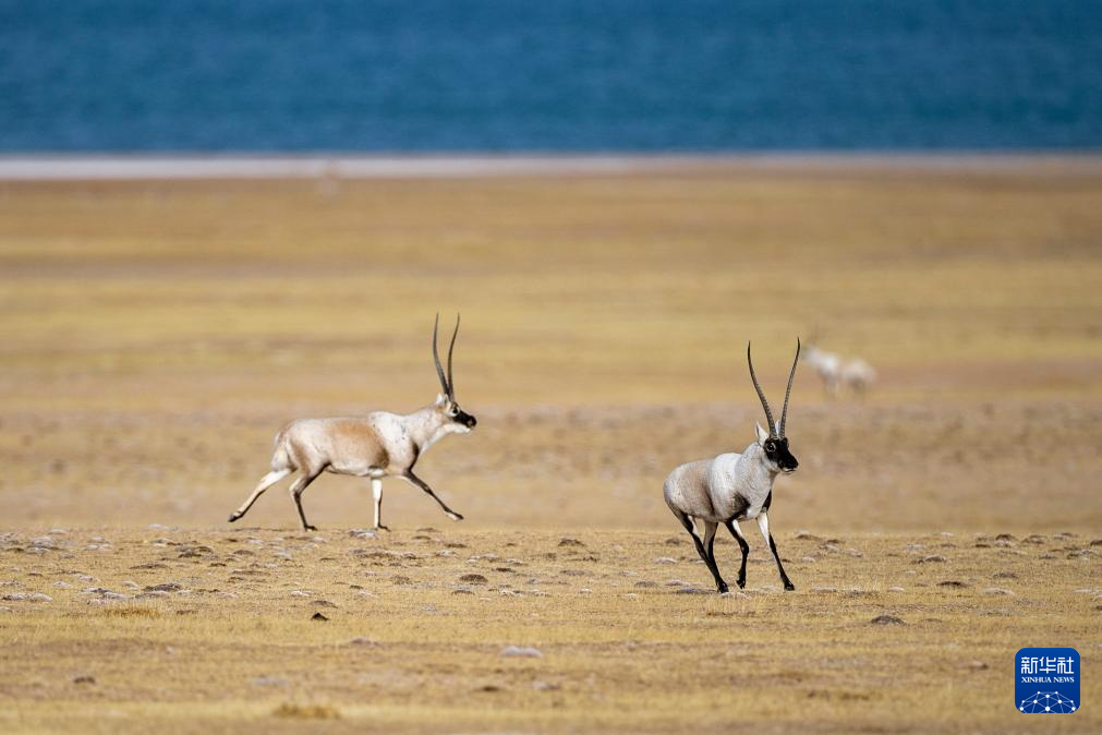 在羌塘國家級自然保護區(qū),兩只雄性藏羚羊在追逐雌性(12月16日攝)。新華社記者 姜帆 攝