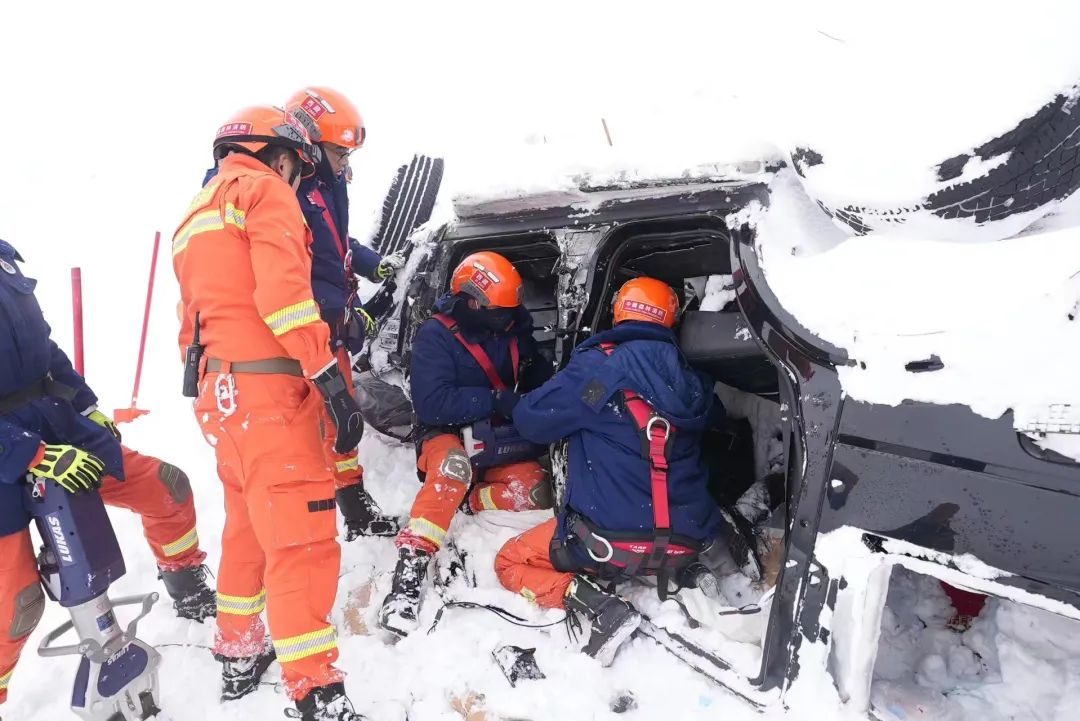 65名隊(duì)員到達(dá)現(xiàn)場時(shí),天已經(jīng)黑透,周圍大風(fēng)呼嘯,數(shù)輛受災(zāi)車輛被直接埋壓在雪下,救援難度很大,很多隊(duì)員都心里直打顫。