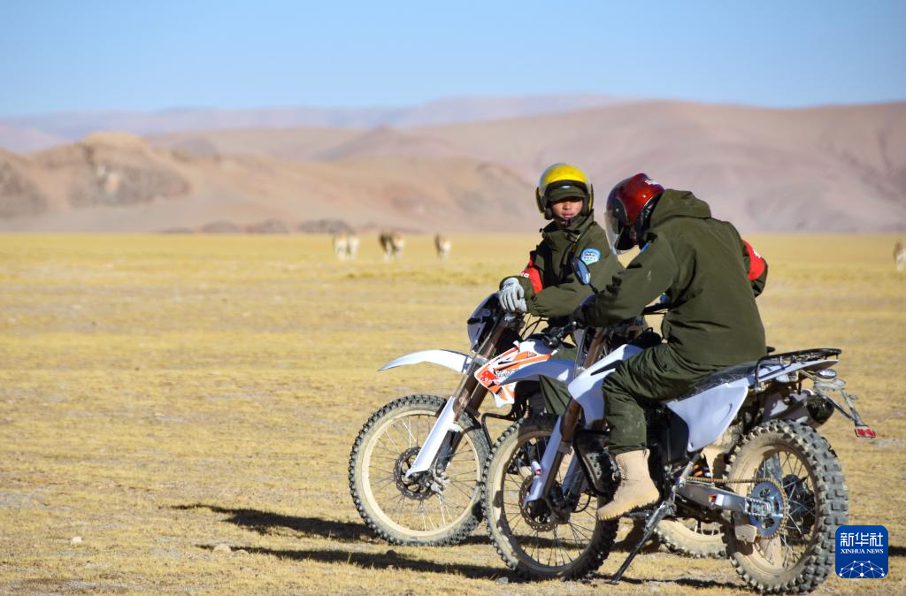 巡護(hù)隊(duì)員們騎著摩托巡護(hù)(12月17日攝)。新華社記者 劉文博 攝