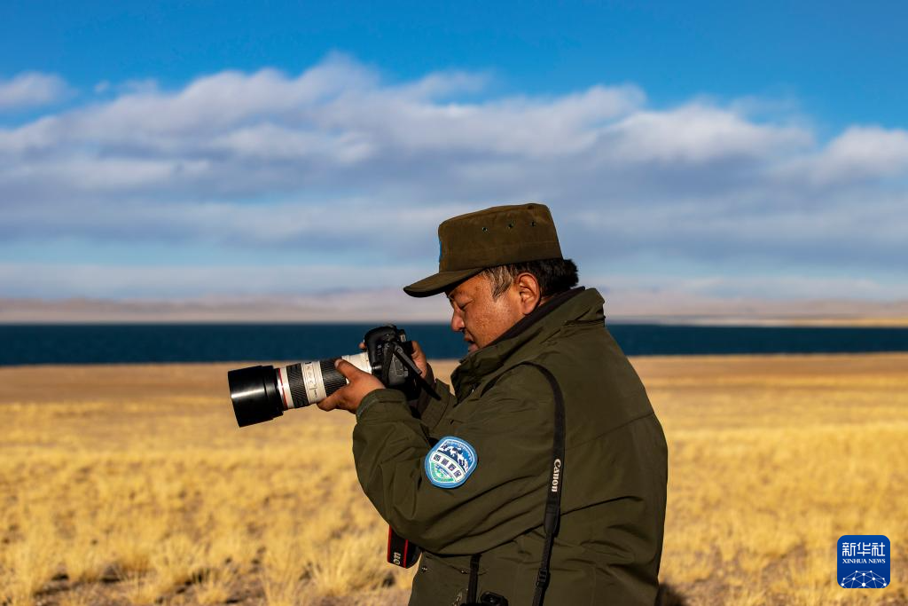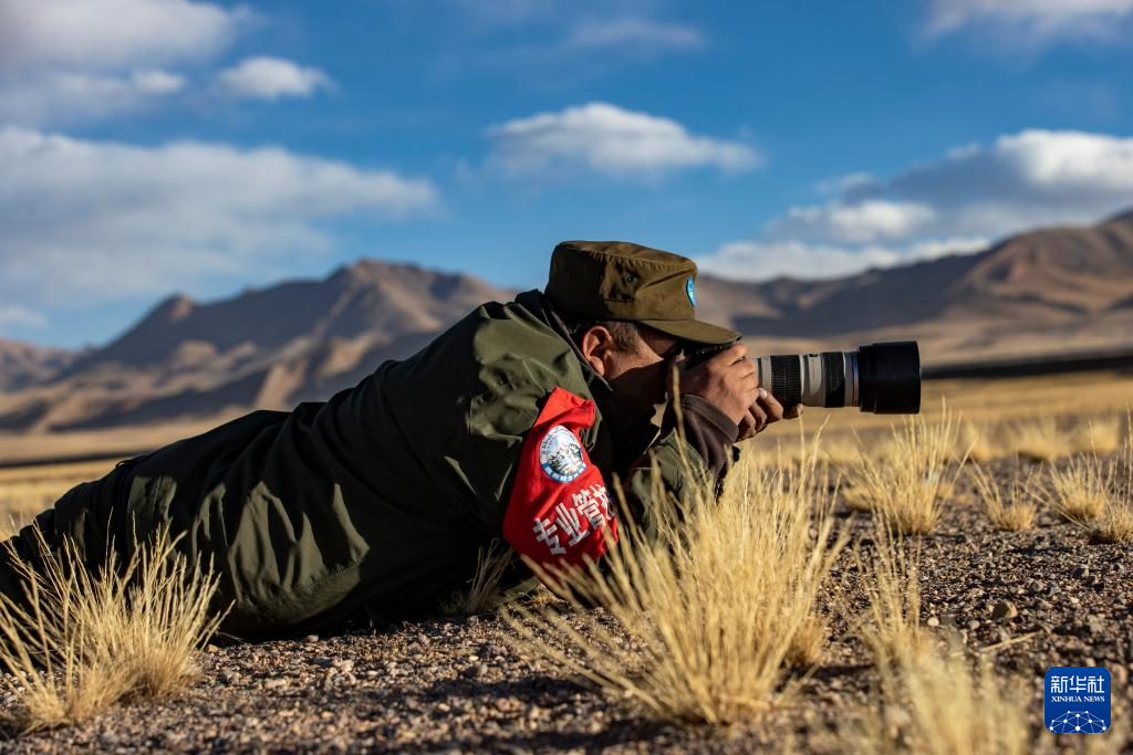 格桑倫珠在巡護(hù)途中拍攝野生動物(12月21日攝)。新華社記者 姜帆 攝