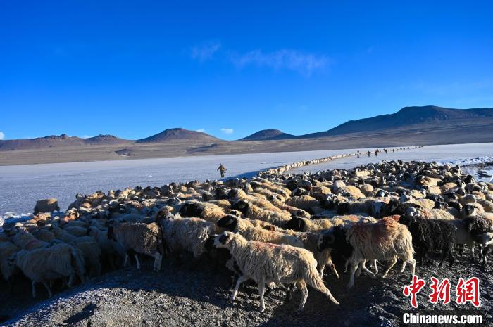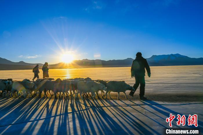 資料圖:2023年2月,普姆雍錯(cuò)冰湖趕羊。 趙朗 攝