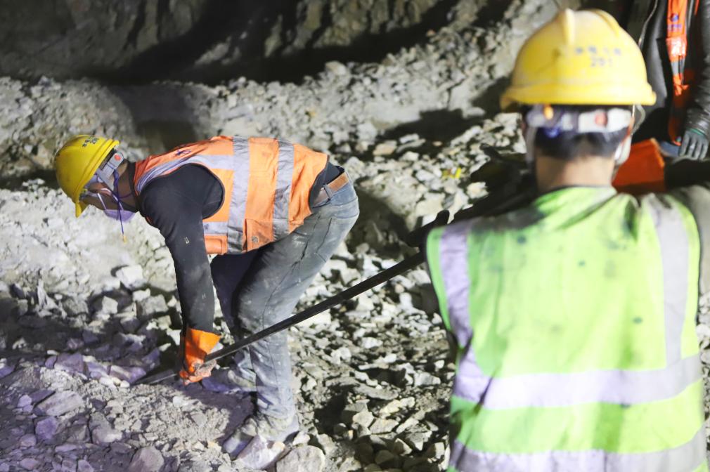 工人在引水隧洞內(nèi)鉆孔,準(zhǔn)備爆破。新華社記者關(guān)明輝 攝