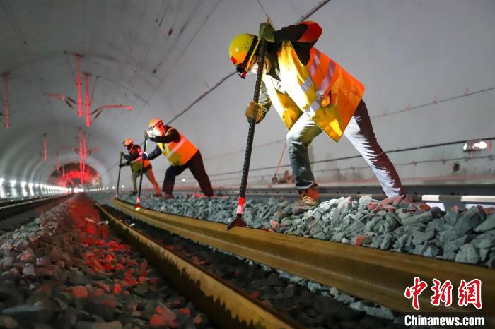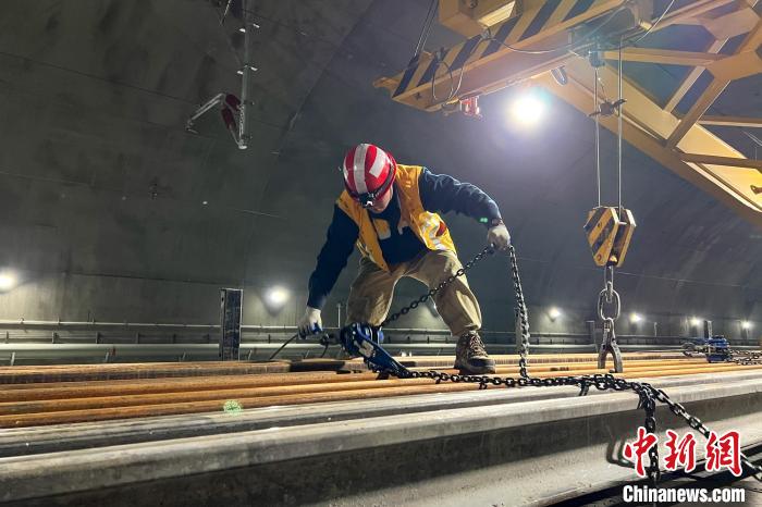 圖為1月1日,西藏拉林鐵路接收新軌作業(yè)現場。拉巴次仁 攝