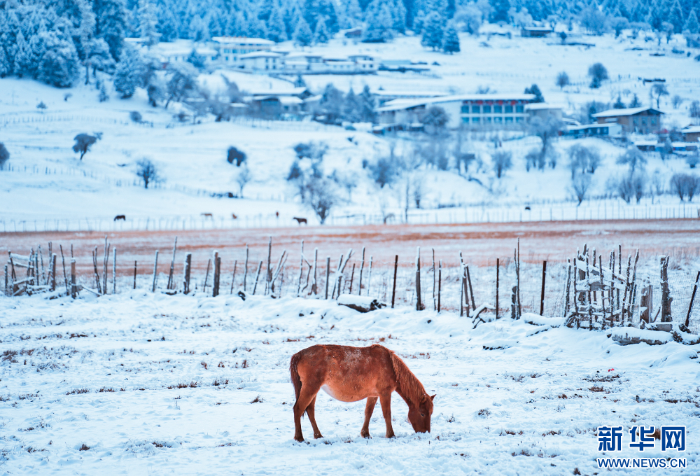 馬兒在雪地中覓食(1月3日攝)。新華網(wǎng)發(fā) 姚力 攝