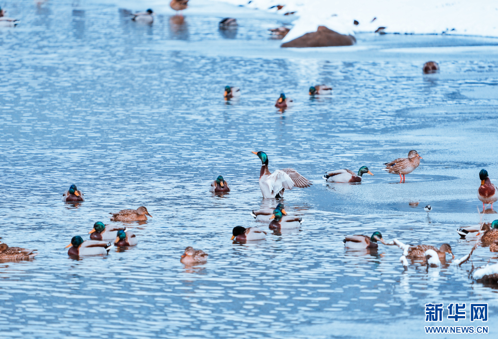 在扎塘魯錯(cuò)湖面棲息的野鴨(1月3日攝)。新華網(wǎng)發(fā) 姚力 攝