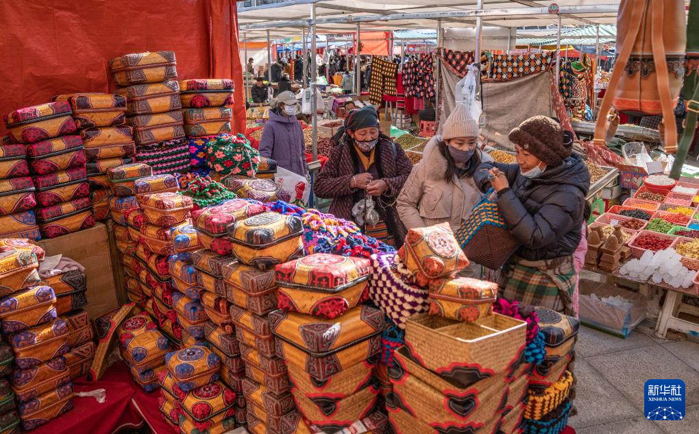 1月9日,商戶在推銷“巴珠”(藏族頭飾)。新華社發(fā)(丁增尼達 攝)