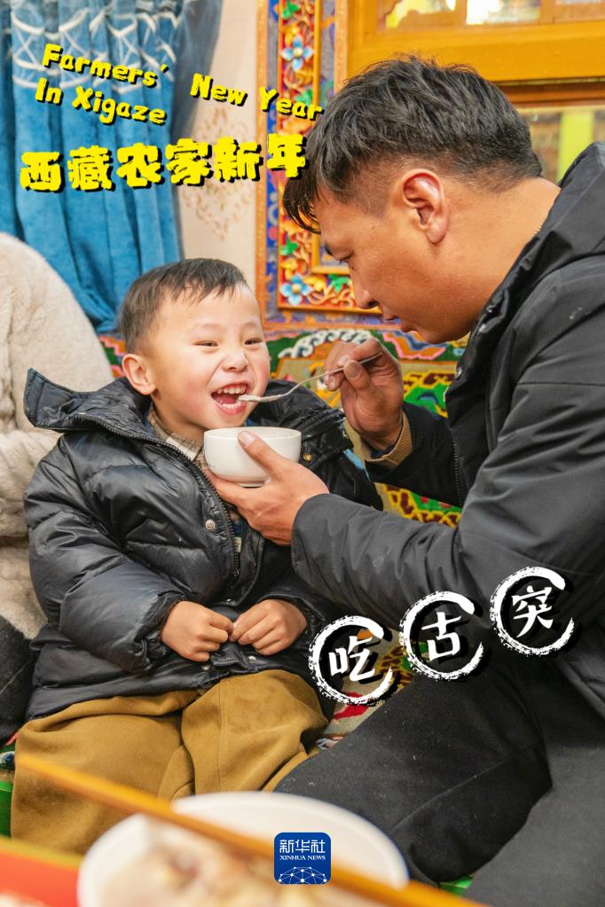 藏歷十一月二十九是農家新年的“古突”夜,按習俗,家家戶戶都要吃“古突”。藏語中,古突的“古”意為九,“突”為面食(1月10日攝)。