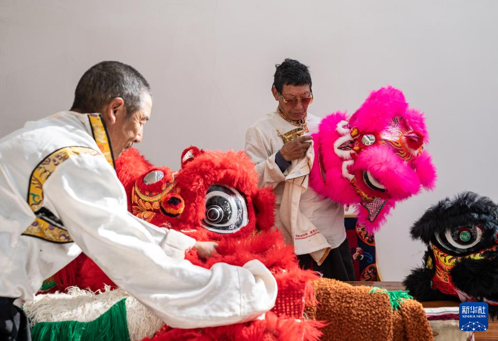 過去,鄧巴阿尼自己動手,用布料和膠水做出獅頭,再給毯子縫上草繩編的毛發(fā)做成獅皮。“后來生活條件慢慢變好,政府也給了很多支持,我們不僅有錢購買舞獅道具,還有機(jī)會去各地表演?!编嚢桶⒛嵴f。2022年,由獅子舞改編的節(jié)目《吉韻碩督》登上了西藏電視臺的藏歷新年聯(lián)歡晚會。2023年,鄧巴阿尼和村民們又將獅子舞搬上了中國西藏旅游文化國際博覽會昌都館的舞臺。