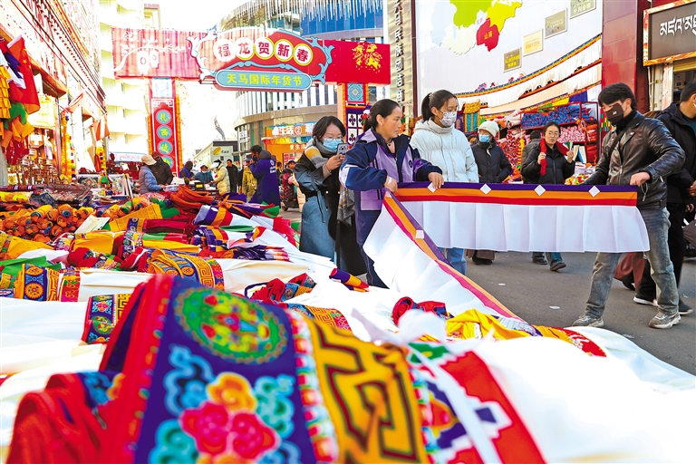 春節(jié)、藏歷新年臨近,年貨市場(chǎng)開(kāi)始熱鬧起來(lái)。山南市澤當(dāng)鎮(zhèn)市民紛紛走進(jìn)大型商超和農(nóng)貿(mào)市場(chǎng)選購(gòu)節(jié)日貨品,商戶備足貨源,推出讓利促銷活動(dòng),滿足各族群眾消費(fèi)需求,年貨市場(chǎng)呈現(xiàn)出購(gòu)銷兩旺的良好態(tài)勢(shì)。