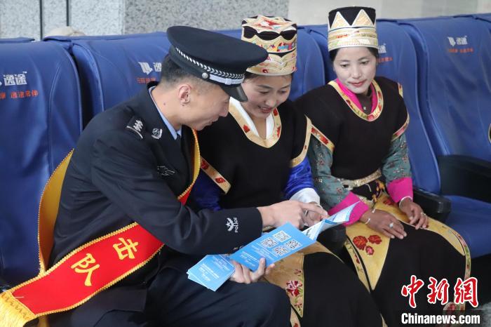 圖為林芝站派出所民警為旅客講解毒品的種類與危害。 張倪華楠 攝