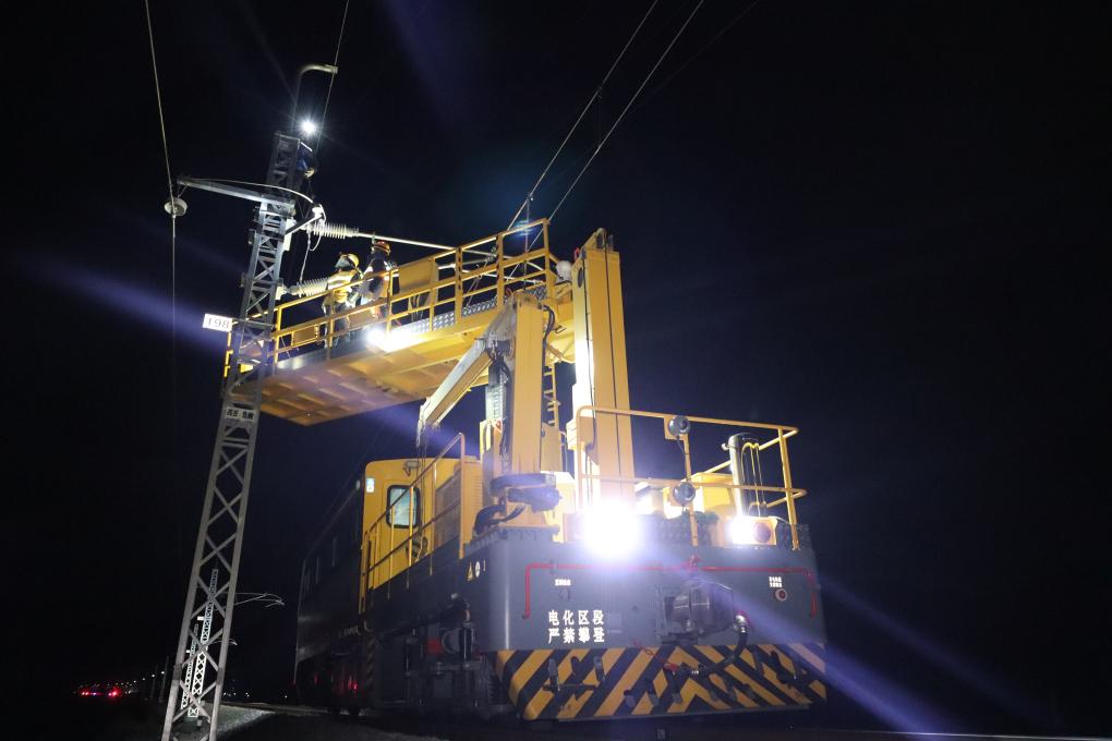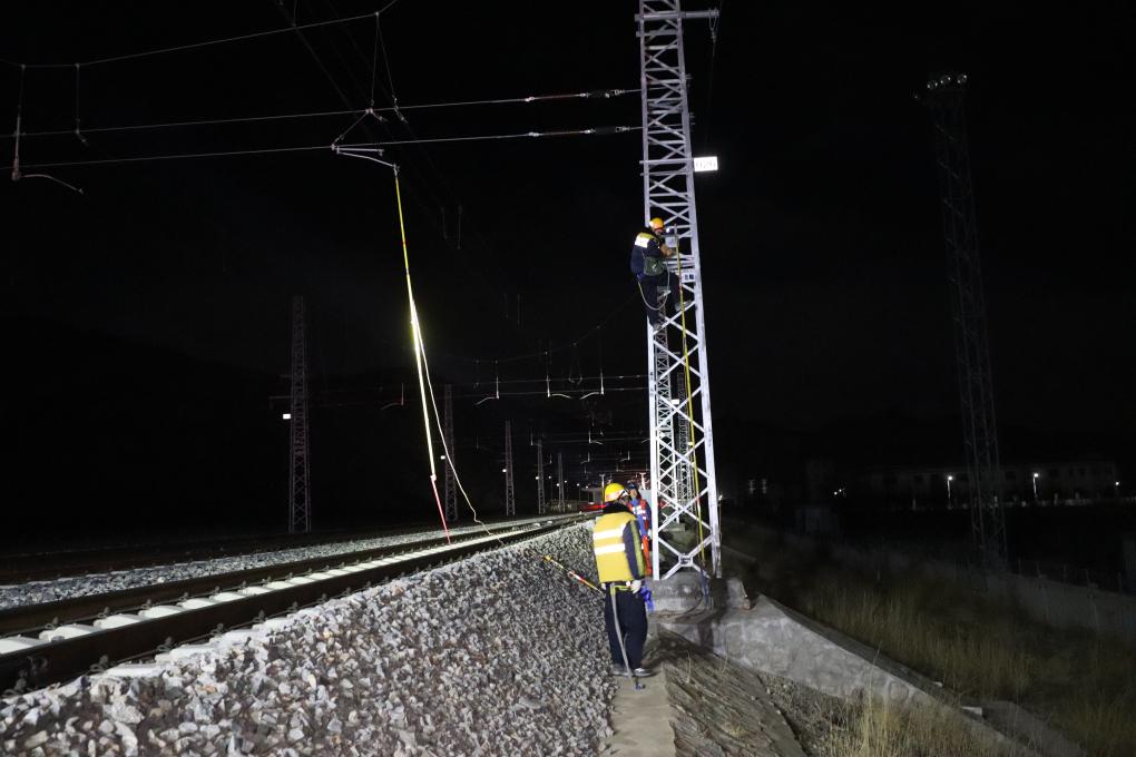 接觸網(wǎng)源源不斷地為電力火車提供電力,就像電氣化鐵路的“血管”?!拔覀兙褪歉咴姎饣F路的醫(yī)生,每天夜里,為它的‘血管’做一場細(xì)致的手術(shù),保證接觸網(wǎng)安全暢通。”李積王說,細(xì)致的夜間作業(yè)確保了拉林鐵路在春運(yùn)期間能夠安全、高效地運(yùn)行。