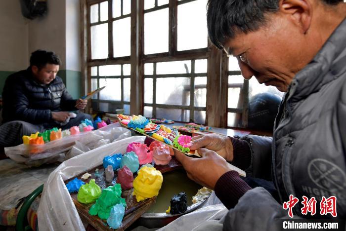 圖為手工藝人制作酥油花。李林 攝