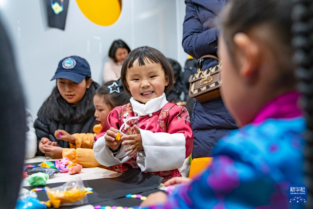 2月3日,孩子們在拉薩的兒童藏裝派對上用彩泥做手工。新華社記者 丁增尼達 攝