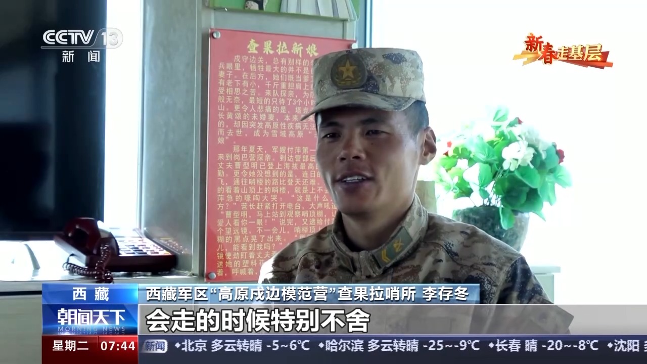 西藏軍區(qū)“高原戍邊模范營”查果拉哨所 李存冬:因?yàn)橛袊庞屑遥灰獓睾昧?,才能有家,才能更好激?lì)我們戍守邊關(guān),能夠更好扎根高原。