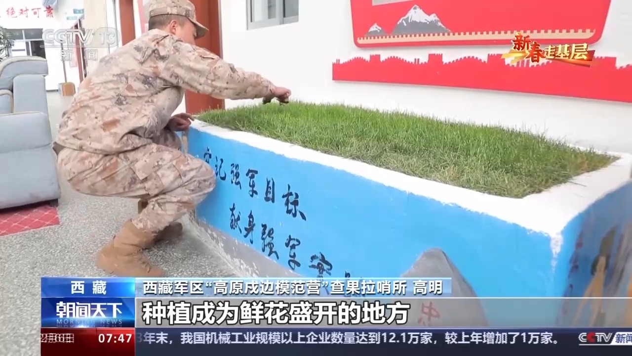 西藏軍區(qū)“高原戍邊模范營”查果拉哨所 高明:我們的戰(zhàn)士現(xiàn)在正在養(yǎng)護(hù)我們的花草。在海拔5318米的這個(gè)地方,我們的花草非常難長,為了能夠營造這種氛圍,我們還是想把這個(gè)地方能夠種植成為鮮花盛開的地方。