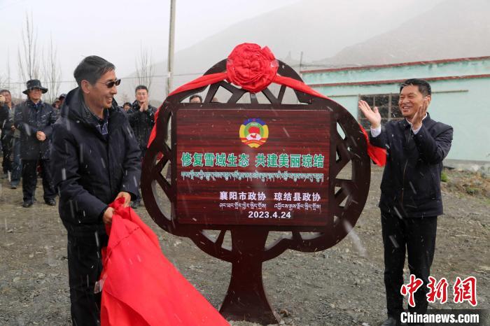 資料圖為襄陽(yáng)、瓊結(jié)兩地政協(xié)在瓊結(jié)縣東嘎社區(qū)東嘎溝為民族團(tuán)結(jié)友誼林揭牌。曲杰 供圖