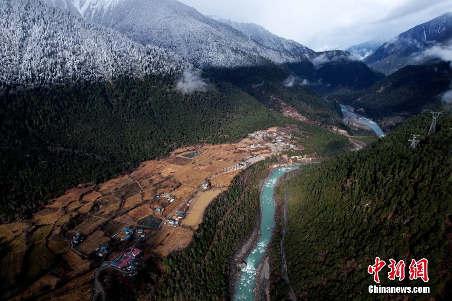 2月22日,航拍西藏林芝帕隆藏布雪景。林芝位于西藏東南部,平均海拔約3100米,氣候濕潤。(無人機照片)中新社記者 李林 攝