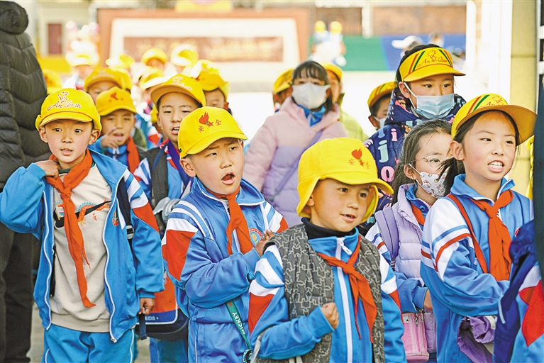 2月28日,拉薩市第一小學(xué)的孩子們上完開(kāi)學(xué)第一天的課程后,開(kāi)心地走出校園。記者 李洲