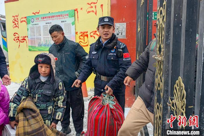 西藏阿里日土移民管理警察護送學生返校。羅發(fā)燕 攝