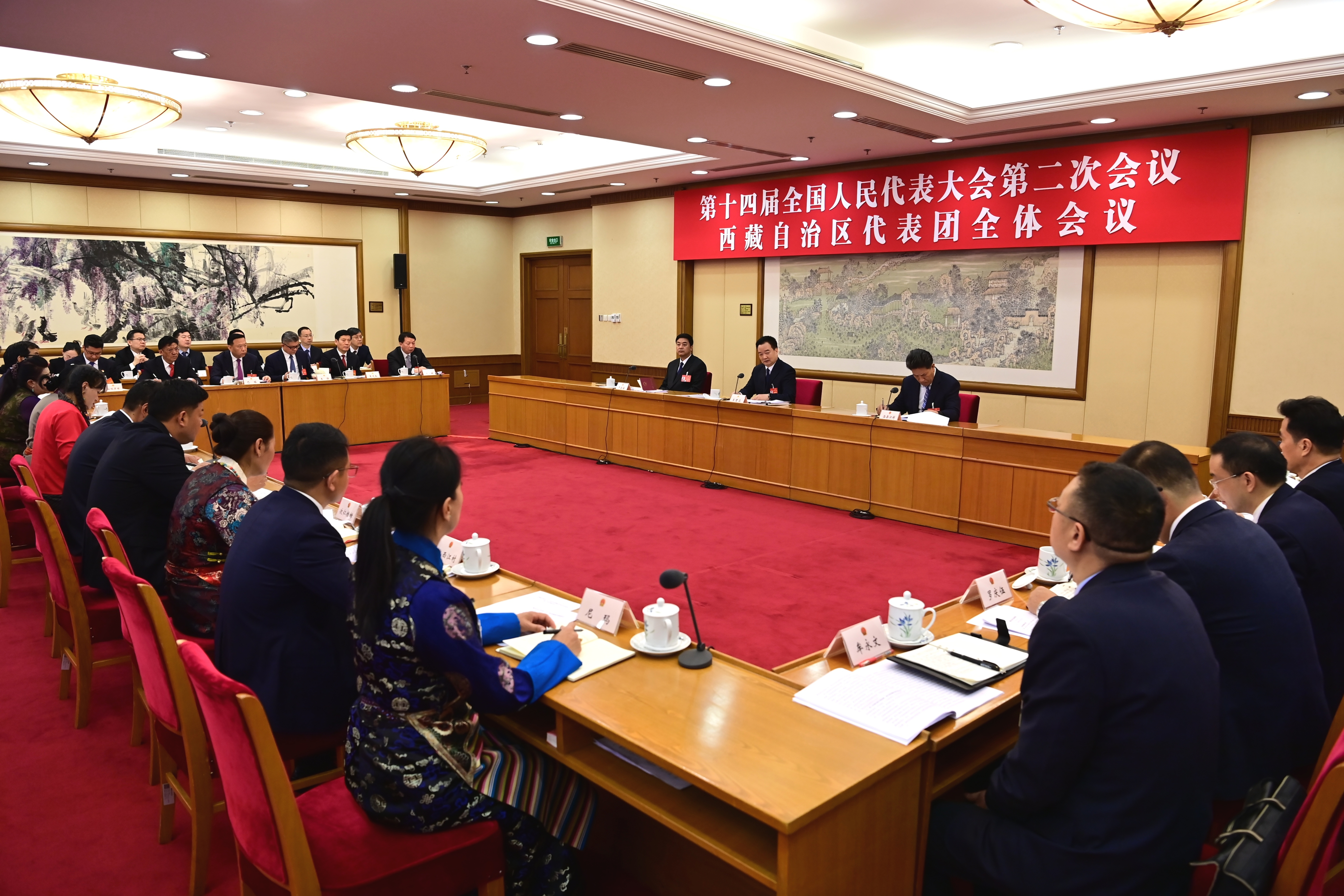 西藏代表團(tuán)審議政府工作報(bào)告,這是會(huì)議現(xiàn)場(chǎng)。記者 旦增西旦 攝