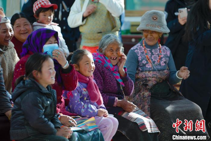 圖為阿里地區(qū)扎西崗鄉(xiāng)群眾正在觀看文藝表演。 蔣美靈 攝