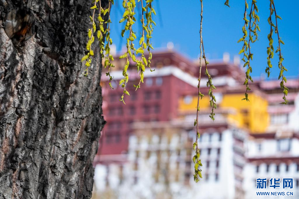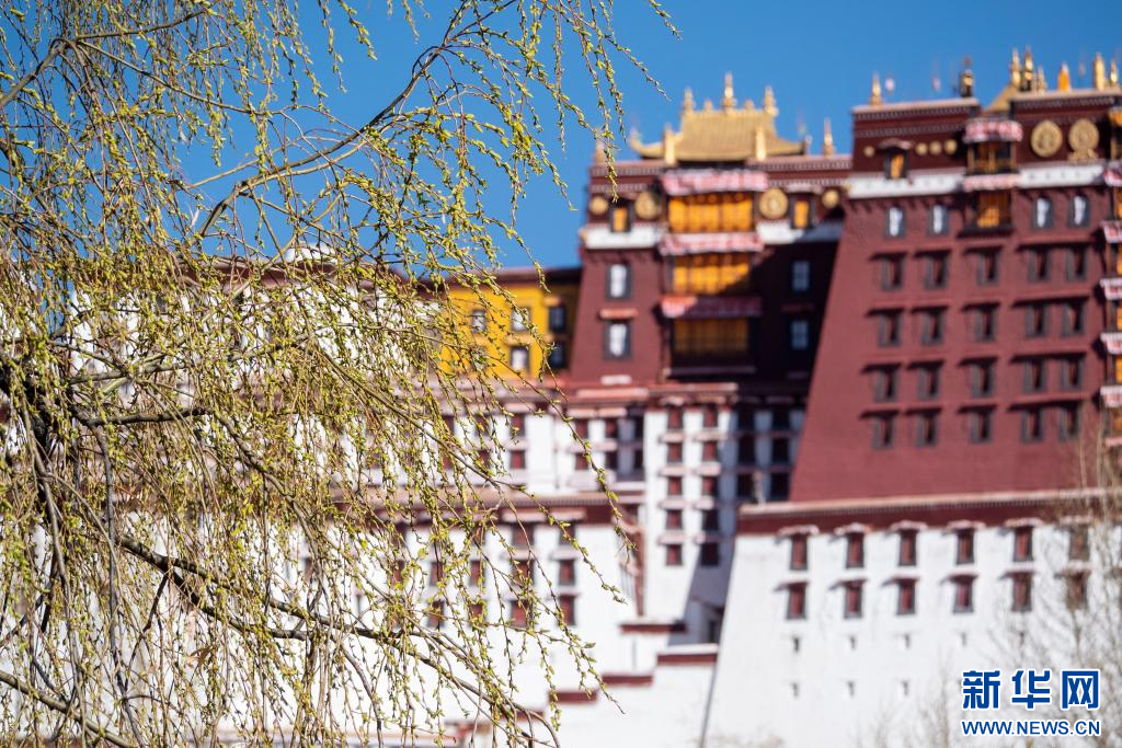 3月15日,吐露新芽的柳枝掩映著布達拉宮。新華網 旦增努布 攝