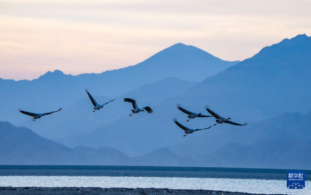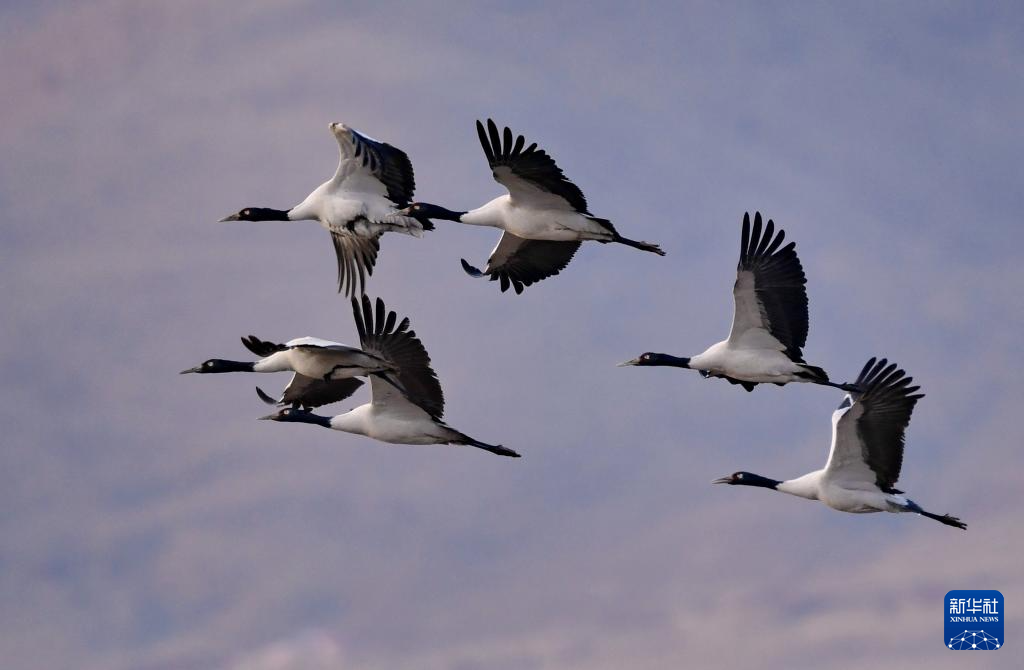 黑頸鶴是國家一級保護動物,主要棲息在海拔2500米至5000米的高原、草甸、沼澤地帶。每年10月下旬左右,大批黑頸鶴來到西藏林周縣越冬,次年3月底、4月初飛往繁殖地。據(jù)了解,每年來林周縣越冬的黑頸鶴種群數(shù)量,從2005年的1200多只增長到2023年的2500多只。