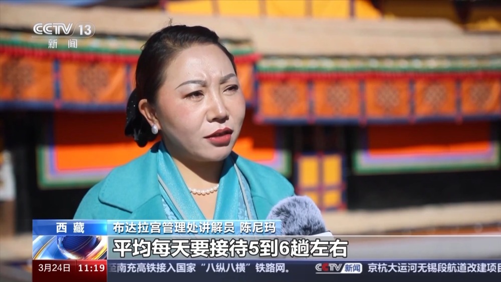 布達拉宮管理處講解員 陳尼瑪:在高峰期的時候,平均每天要接待5到6趟左右,也就是一天要給50到60人左右進行講解。