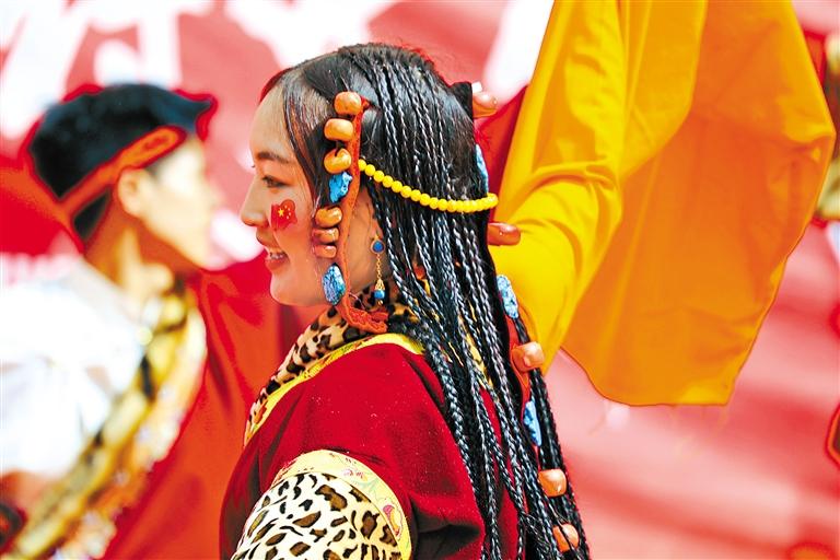 近日,拉薩市堆龍德慶區(qū)德慶鎮(zhèn)舉行“中華民族一家親 同心共建新德慶”紀(jì)念西藏民主改革65周年文藝匯演活動。活動在藏戲《扎西雪巴》中拉開帷幕,臺上的演員激情表演、臺下的觀眾跟隨旋律一同吟唱,歌曲、舞蹈、模特走秀等精彩節(jié)目輪番上演,為大家?guī)砹艘粓鼍始姵实囊暵犑⒀?,表達(dá)了農(nóng)牧民群眾對黨、對祖國的深深熱愛和美好祝福。(記者 洛桑旦增 達(dá)珍 永青 萬靖 曲珍 格桑倫珠 桑鄧旺姆 拉巴桑姆 見習(xí)記者 卓瑪七林)