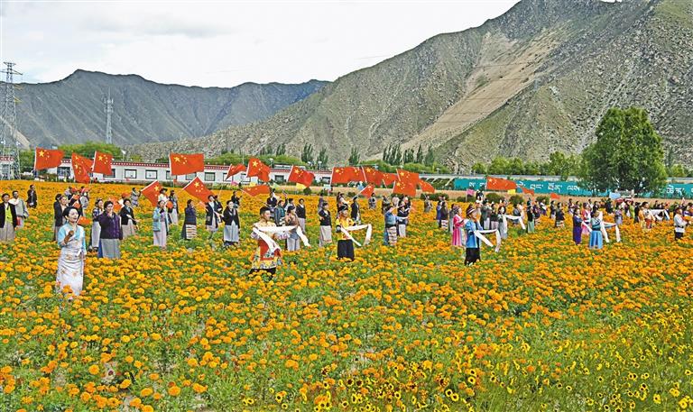 正如歌中所唱:“再唱山歌給黨聽,幸福的歌兒獻(xiàn)給你,民族兄弟姐妹心連著心,我們攜手和諧家園……”65年的滄桑巨變匯聚成一首幸福的歌兒,由360多萬雪域兒女唱給美好的新時(shí)代,唱給偉大的中國共產(chǎn)黨