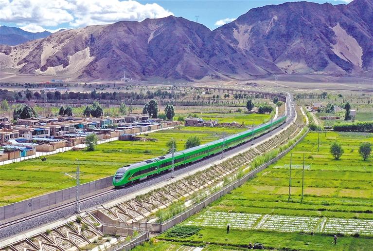 當(dāng)前,全區(qū)公路通車總里程達(dá)到12.14萬公里,鐵路通車?yán)锍?359公里,國際國內(nèi)航線169條……西藏交通從無到有、從通達(dá)到通暢、從行程到旅程,從牛運(yùn)馬馱的原始交通發(fā)展到公路、航空、鐵路的綜合立體現(xiàn)代交通運(yùn)輸體系?!皟陕贰本裨谛聲r(shí)代更加發(fā)揚(yáng)光大、凝聚人心!