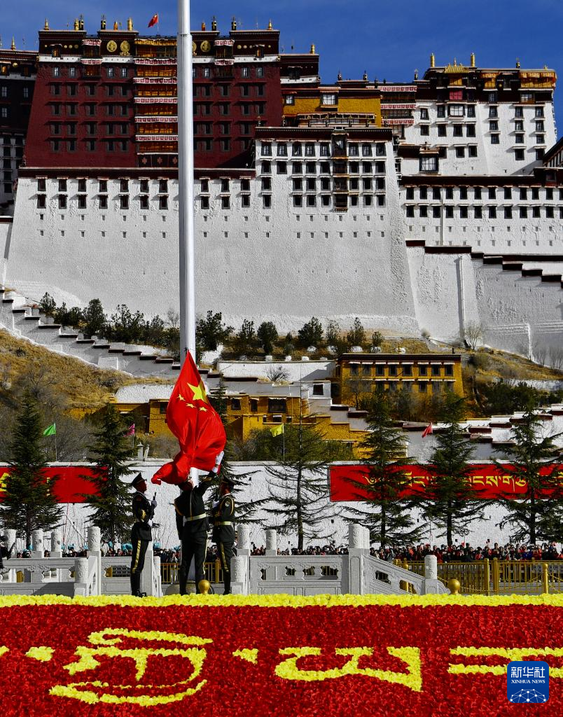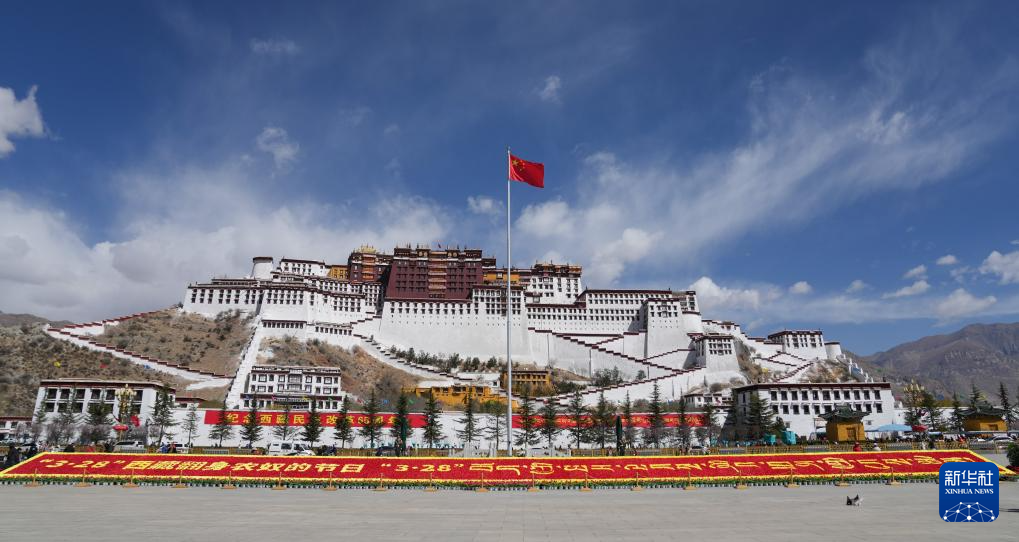 3月28日,拉薩布達拉宮廣場舉行升旗儀式。新華社記者 張汝鋒 攝