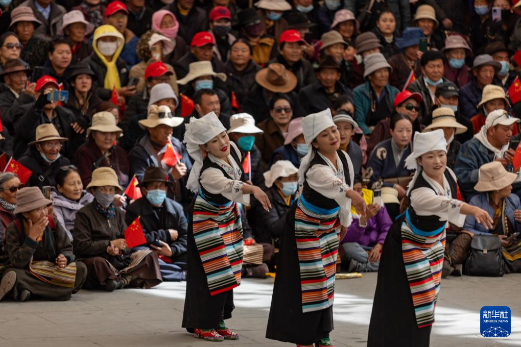 3月28日,群眾在拉薩市宗角祿康公園內(nèi)觀看文藝演出,慶祝西藏百萬農(nóng)奴解放65周年。新華社記者 晉美多吉 攝