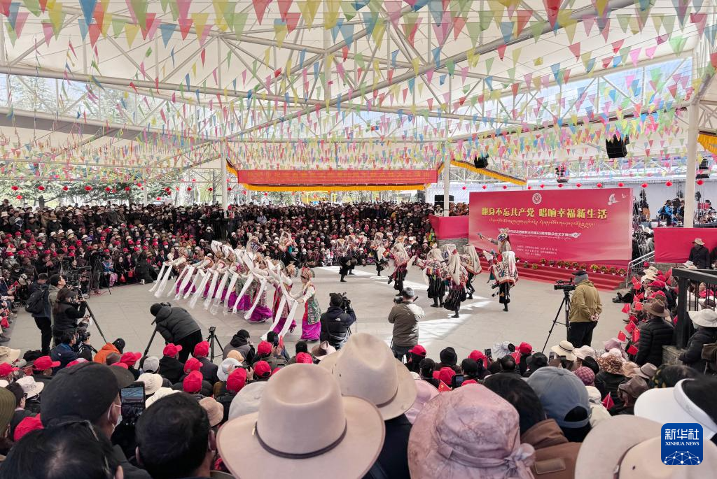 3月28日,群眾在拉薩市宗角祿康公園內(nèi)觀看文藝演出,慶祝西藏百萬農(nóng)奴解放65周年。新華社記者 姜帆 攝