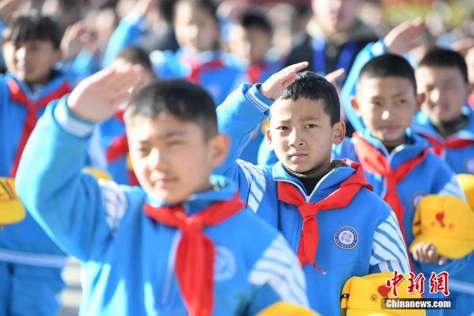 3月28日,西藏各族各界人士聚集在拉薩布達(dá)拉宮廣場(chǎng),升國旗、唱國歌,參加西藏百萬農(nóng)奴解放65周年紀(jì)念活動(dòng)。圖為升國旗儀上的學(xué)生代表。中新社記者 貢嘎來松 攝