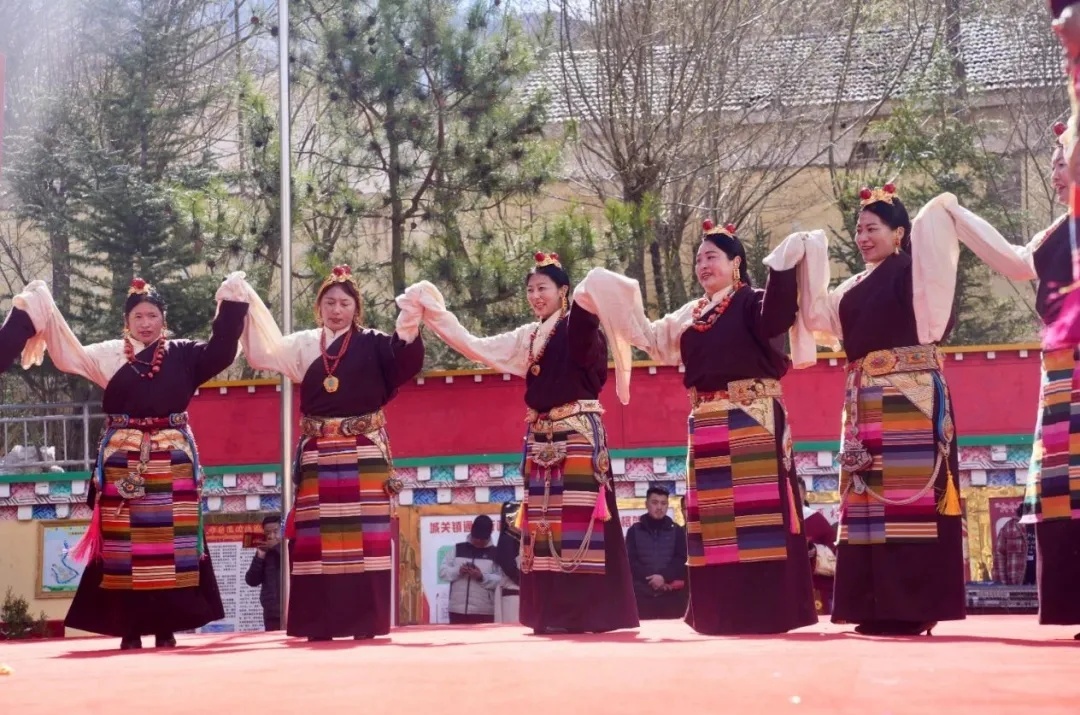 初春的通夏村,嫩柳吐新、彩旗飄飄,鮮艷的五星紅旗迎著風(fēng)招展,人們盛裝而來,空氣中洋溢著節(jié)日的氛圍。在觀眾的熱烈掌聲中,《銘記歷史》《翻身農(nóng)奴把歌唱》《歡騰的熱巴》……一首首經(jīng)典的歌曲,一段段熱情四溢的舞蹈盡情展現(xiàn)了康巴兒女對黨的感激和幸福生活的歌頌。