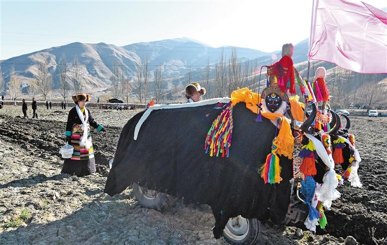 喝完青稞粥,多吉曲珍全家一起出動去社區(qū)高標(biāo)準(zhǔn)農(nóng)田參加春耕儀式。