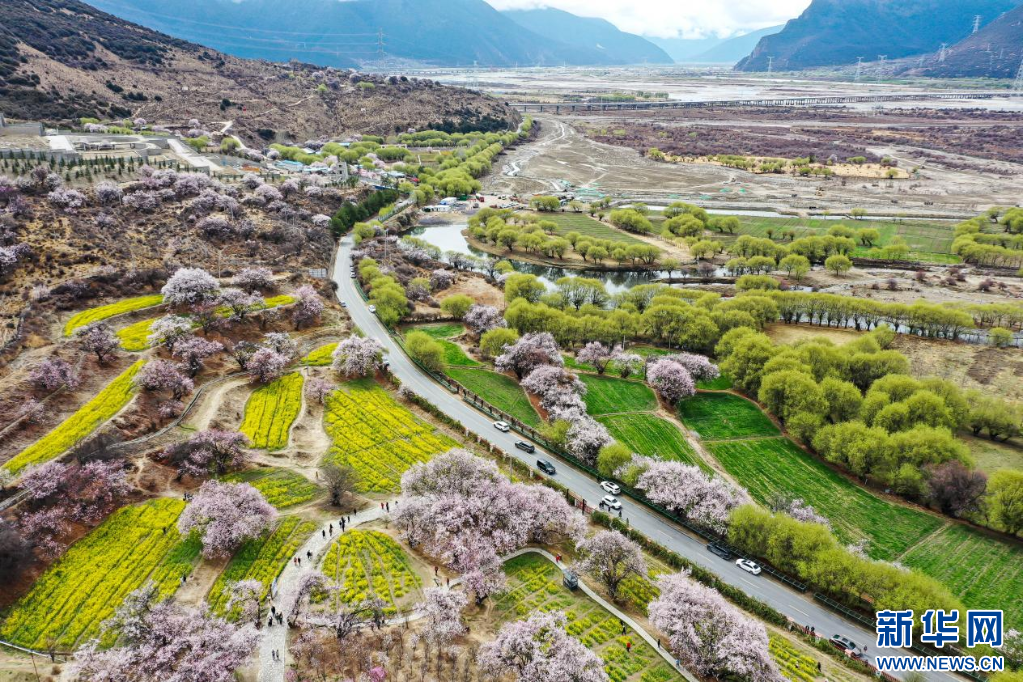 3月31日拍攝的林芝市巴宜區(qū)嘎拉村的桃花與油菜花。 新華網(wǎng)發(fā) 李騰 攝