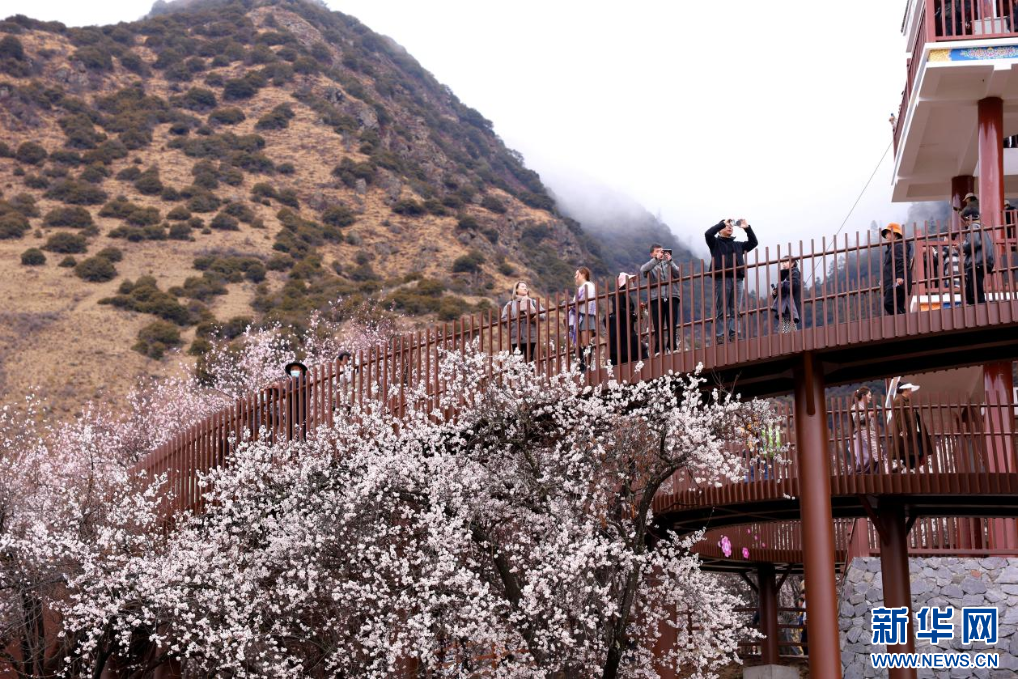 3月31日,游客在林芝市巴宜區(qū)嘎拉村拍照留念。新華網(wǎng)發(fā) 李騰 攝