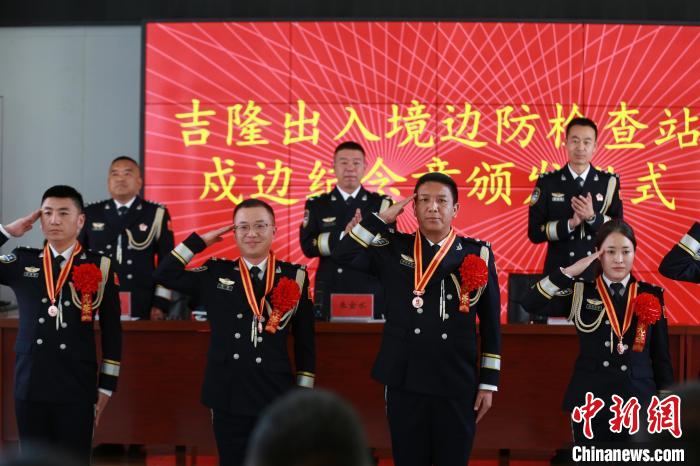 2日,西藏吉隆出入境邊防檢查站在吉隆口岸舉行戍守邊疆紀念章頒發(fā)儀式,20名移民管理警察獲頒銅制戍邊紀念章。