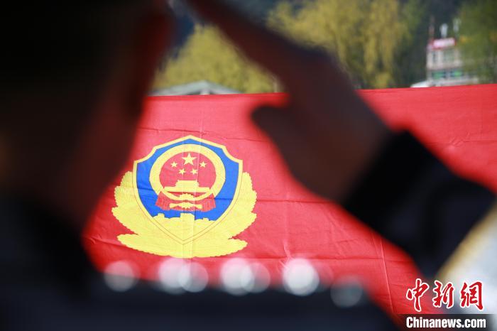 圖為吉隆海關(guān)緝私警察李增君向警旗敬禮。肖富貴 攝