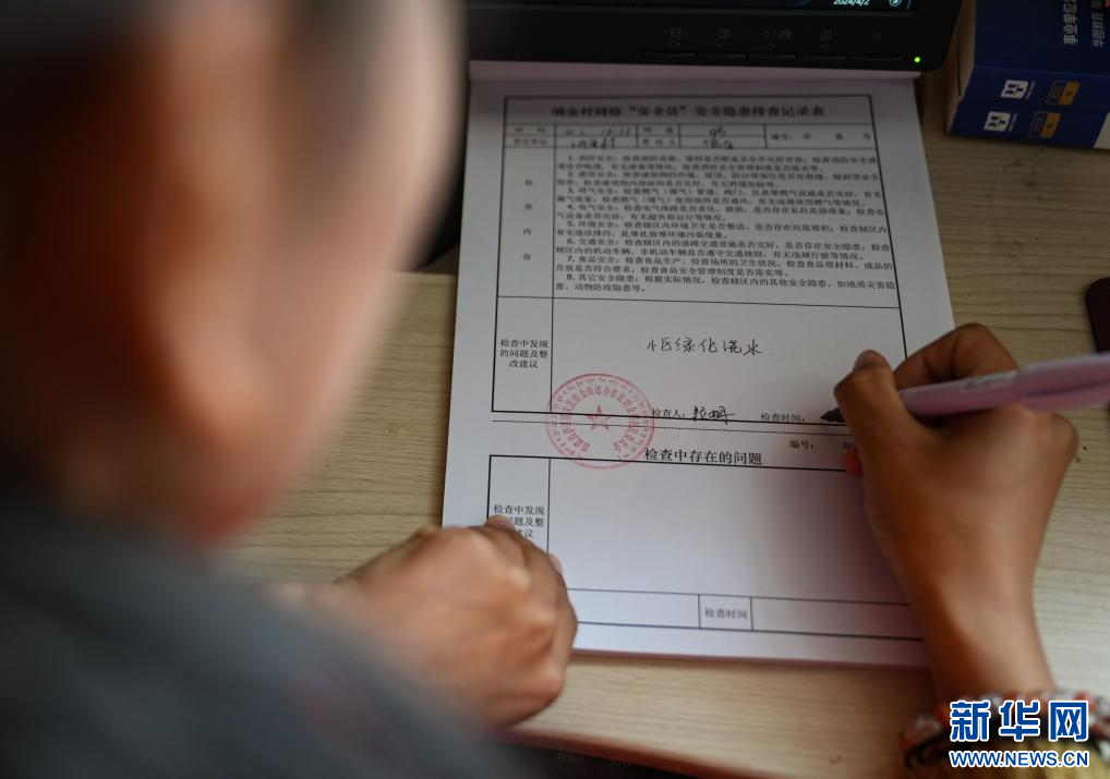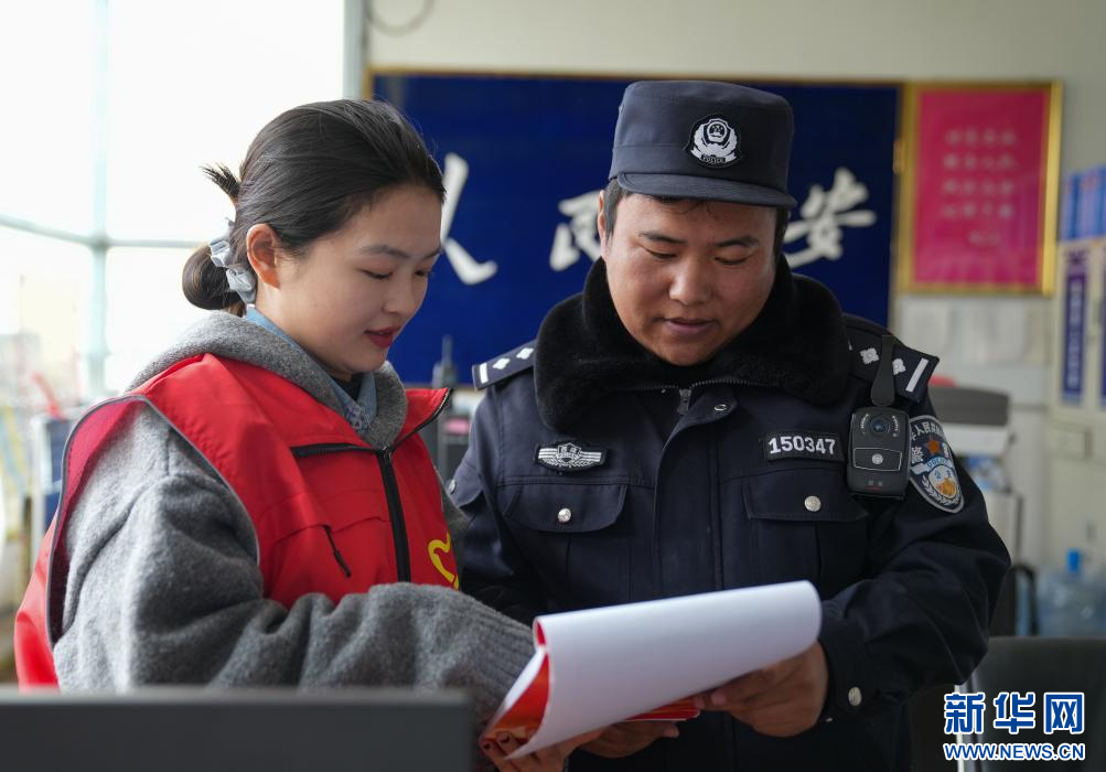 4月2日,納金村工作人員在和轄區(qū)民警對(duì)接網(wǎng)格相關(guān)工作。(新華社記者 晉美多吉 攝)