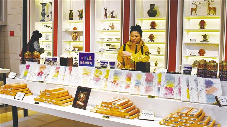 許多博物館、美術(shù)館都會設(shè)置一個文創(chuàng)商店或是藝術(shù)品商店,讓觀眾從展廳出來,能有一個流連、回味乃至情緒過渡的空間。羅珍介紹,該館借鑒國內(nèi)外優(yōu)秀博物館先進的服務理念,依托西藏博物館豐富的文化和展覽資源,打造了西藏博物館文化藝術(shù)品開發(fā)中心,其定位就是博物館“最后一個展廳”。