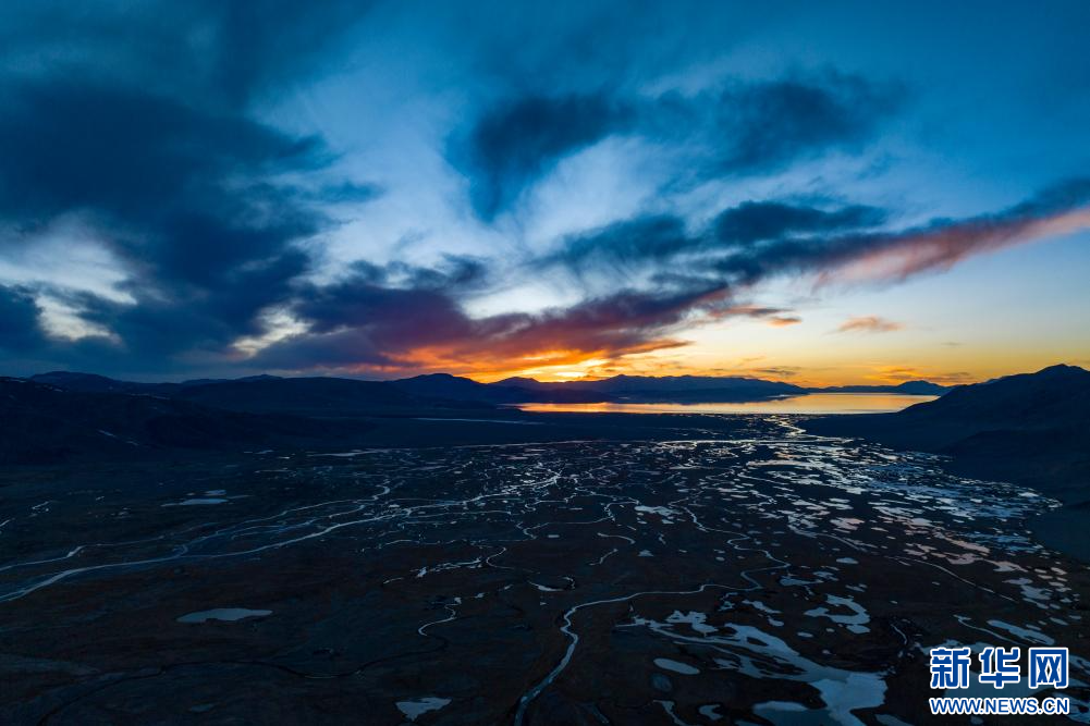 4月14日,傍晚從申扎縣縣城拍攝的色林錯景致(無人機照片)。新華網(wǎng) 旦增努布 攝