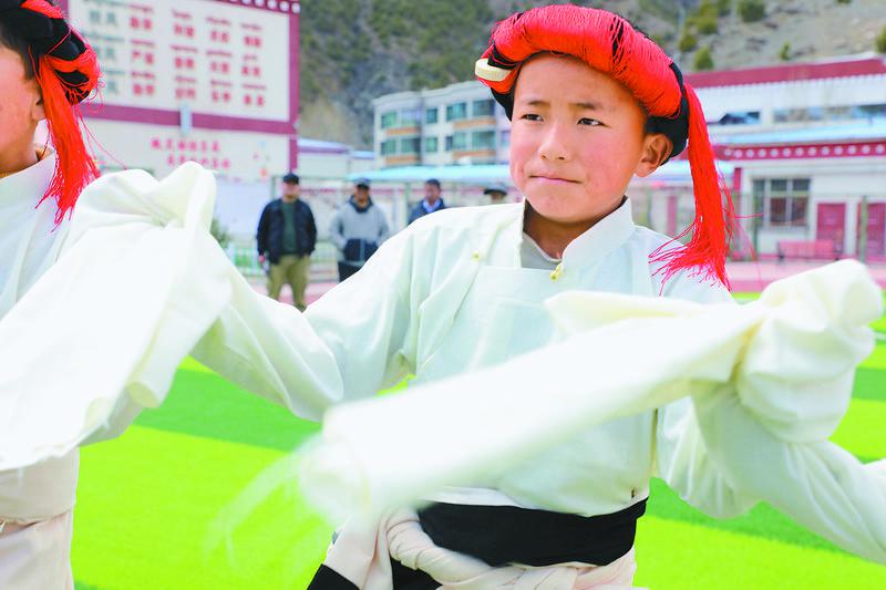 圖為認(rèn)真排練“索榮卓舞”的若達(dá)鄉(xiāng)小學(xué)學(xué)生。記者 曲珍 通訊員 益西卓嘎 攝