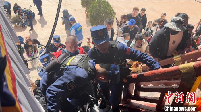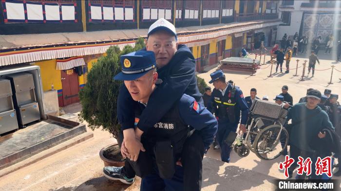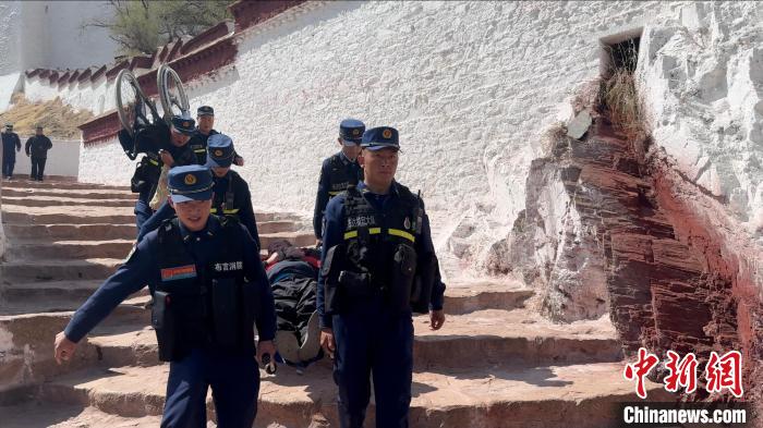 圖為布達(dá)拉宮消防大隊(duì)護(hù)航殘障人士游覽。劉瑜 攝